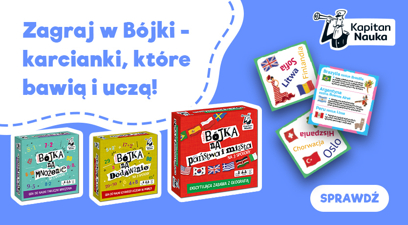Karcianki, które wciągają do zabawy całą rodzinę, ćwiczą spryt, refleks, spostrzegawczość, uczą mnożenia, dodawania, czytania, podstaw geografii, angielskich i hiszpańskich słówek, a do tego – zapewniają nieskończone godziny emocjonującej zabawy! O czym mowa? O Bójkach – jednej z... Czytaj więcejkeyboard_arrow_right