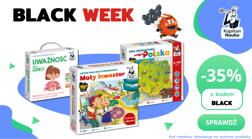 Kapitan Nauka to marka, która powstała dzięki rodzicom, poszukującym mądrej, pełnej radości, ale i wymagającej rozrywki dla dzieci. Skupiamy się na zagadkach, grach, zagadkach i książeczkach, które uczą przez kreatywną zabawę i wspomagają rozwój dziecka.