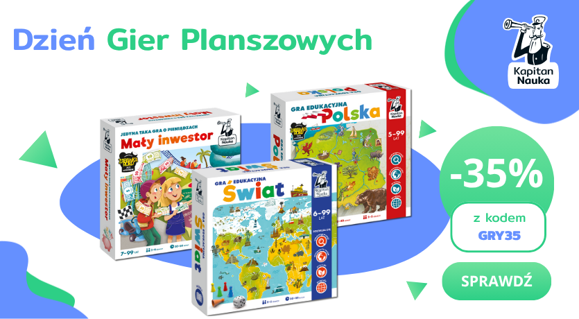 Kapitan Nauka to marka, która powstała dzięki rodzicom, poszukującym mądrej, pełnej radości, ale i wymagającej rozrywki dla dzieci. Skupiamy się na zagadkach, grach, zagadkach i książeczkach, które uczą przez kreatywną zabawę i wspomagają rozwój dziecka.