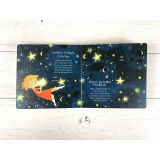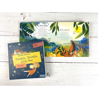 Angielski dla dzieci. Piosenki – Twinkle Twinkle Little Star to zbiór wpadających w ucho piosenek dla najmłodszych do wspólnego czytania i śpiewania, a także doskonałe wprowadzenie do nauki języka angielskiego. Znajdziecie w nim pięknie zilustrowane, znane i lubiane piosenki dla dzieci, takie jak Twinkle Twinkle Little Star, Incy Wincy Spider czy Baa Baa Black Sheep, które zachęcą dzieci do śpiewania i oswoją z językiem angielskim.