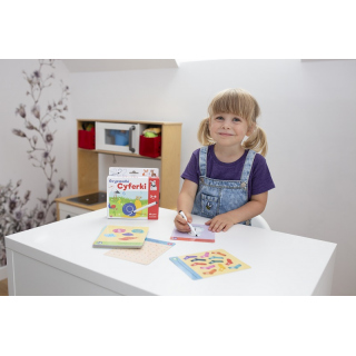 W pakiecie znajduje się 60 zadań z flamastrem, dzięki któremu możliwe jest wielokrotne rozwiązywanie zagadek i zmazywanie odpowiedzi, co ułatwi wspólną zabawę z rodzeństwem i rówieśnikami. Dodatkowym atutem są barwne ilustracje zadań autorstwa Ewy Brzozowskiej, które przyciągną uwagę dziecka i zachęcą do zaangażowania.