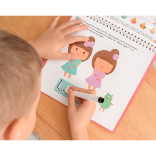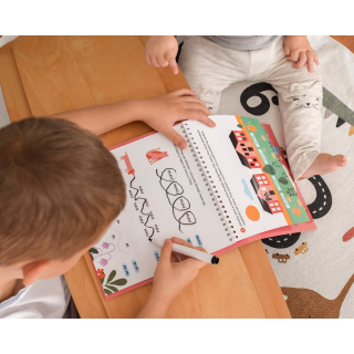 Łączenie sylab w wyrazie, łamanie szyfrów literowych, układanie domino i wyszukiwanie liter tworzących imię to tylko niektóre z wyzwań, jakie czekają na przedszkolaków.  W ten sposób nauczą się nazywać głoski, pisać litery, łączyć dźwięki i symbole w wyrazy oraz je odczytywać i zapisywać. Zadania można wypełniać wielokrotnie, bo dzięki zmywalnym kartom i suchościeralnemu flamastrowi zabawa trwa w nieskończoność.