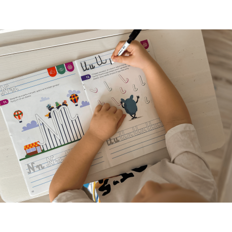 Uzupełnieniem elementarza są dwa zeszyty ćwiczeń z pisakiem ścieralnym: