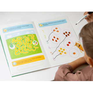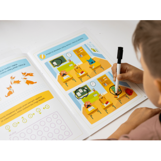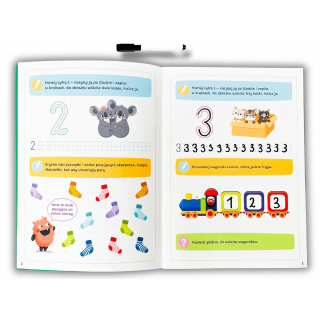 Do zeszytu dołączony jest pisak ścieralny – w zestawieniu z odpowiednio przygotowanymi zadaniami pozwoli dziecku pisać, zmazywać, a także wielokrotni rozwiązywać zadania. Ćwiczenia wspierają rozwój grafopercepcji, motoryki małej, koncentracji, spostrzegawczości i logicznego myślenia.