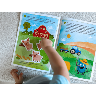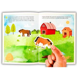 Do książeczki dołączono pakiet 35 dużych naklejek do wielokrotnego naklejania i odklejania! Dzięki temu zabawom na wsi nie będzie końca. Czas spędzony z książeczką daje okazję do poznawania otaczającego świata, rozwoju spostrzegawczości, koordynacji oko-ręka czy nauki liczenia.