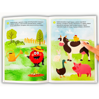 Zobacz, ile owieczek jest na łące i spróbuj znaleźć coś równie zakręconego jak świński ogonek! Odwiedź kumkające nad stawem żabki, pomóż Frydze w pracach ogrodowych i potowarzysz Gryzce podczas grzybobrania!