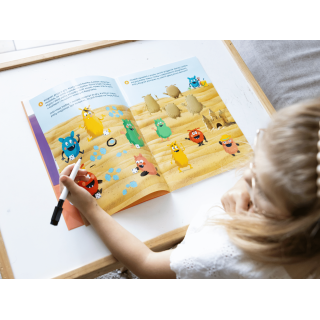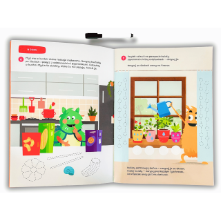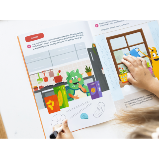 Książeczka jest kontynuacją pozycji Bazgraki i zabawy 3-latków, zawiera całkiem nową porcję zabaw. To wartościowa rozrywka w domu, przedszkolu, w kolejce czy w podróży. Z zabawami rozwiniecie myślenie logiczne, grafopercepcję czy koordynację oko-ręka!