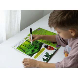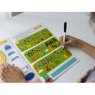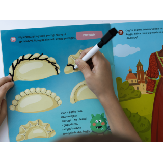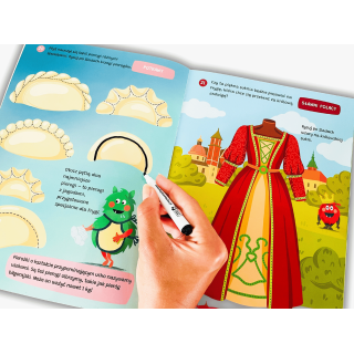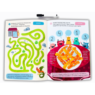 Do książeczki dołączono zmazywalny pisak, poszczególne zadania można rozwiązywać wielokrotnie.