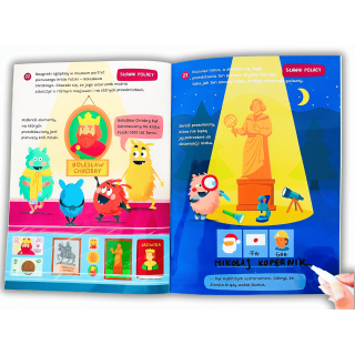 Książeczka oferuje nie tylko garść fascynujących informacji o Polsce, lecz także – różnorodność zabaw (m.in. plątaninki, labirynty, wyszukiwanki).