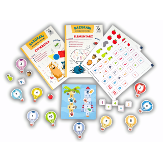 Bazgraki. Matematyka. Teczka edukacyjna to zestaw do nauki podstaw matematyki dla dzieci. W poręcznej, wygodnej teczce znajdziecie dwie książeczki z naklejkami (elementarz i ćwiczenia) oraz dodatkowe pomoce w postaci elementów do wypychania!