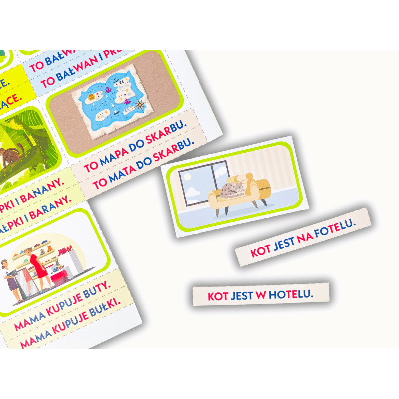 Teczka została zaprojektowana tak, aby stopniowo podnosić poziom trudności, dzięki czemu dziecko uczy się bez presji i z naturalną motywacją. Zadania podzielono na małe porcje wiedzy, które zachęcają do regularnych ćwiczeń oraz do odczytywania napisów z najbliższego otoczenia. Urozmaicone formy aktywności sprawiają, że dzieci szybko przechodzą od prostych sylab do czytania całych wyrazów i zdań.