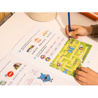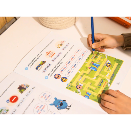W zestawie znajdują się dwie książeczki, z którymi dziecko może pracować równolegle: