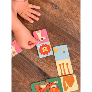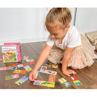Domino uczy rozpoznawać zwierzątka i zwraca uwagę maluchów na ich charakterystyczne cechy, jak ułożenie ciała, sierść czy kolor. Podczas zabawy dzieci ćwiczą refleks oraz analizę i syntezę wzrokową. Muszą wykazać się nie lada spostrzegawczością, bo zwierzątka można układać wzdłuż i wszerz, a nawet do góry nogami. Z Domino można bawić się samodzielnie lub z innymi graczami: rodzicami, rówieśnikami lub rodzeństwem.