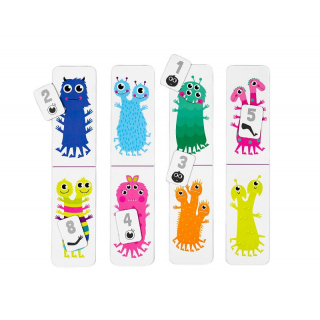Pudełko zawiera: żetony z liczbami, kolorami i częściami ciała potworów oraz paski z potworami i przysmakami do układania plansz. Zasady gry szczegółowo wyjaśni instrukcja w języku polskim i angielskim.