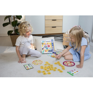 Podczas zabawy dzieci poćwiczą refleks i myślenie logiczne! A do tego – mogą potrenować angielskie słówka! Pod składnikami na listach zakupowych znajdują się dwujęzyczne podpisy! W pakiecie także anglojęzyczne warianty rozgrywek (w instrukcji) oraz nagrania mp3 wszystkich słówek.