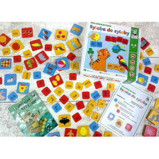 Gra edukacyjna Sylaba do sylaby to układanka obrazkowa doskonaląca analizę i syntezę sylabową, czyli umiejętność sylabizowania, której opanowanie bywa jednym z etapów nauki czytania – w zależności od przyjętej metody. Zabawy sylabami rozwijają ppercepcję wzrokową, słownictwo oraz wyobraźnię językową.