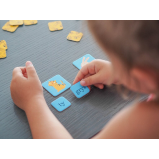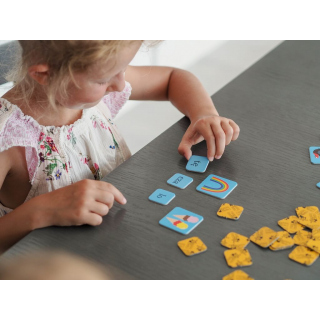 Gra Sylaba do sylaby angażuje zmysły dziecka: wzrok, słuch oraz dotyk, a także utrwala kierunek czytania od lewej do prawej strony.