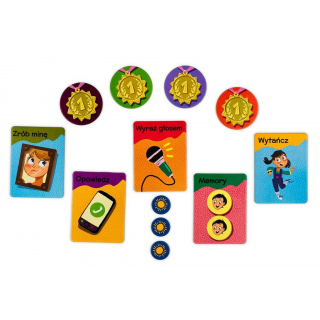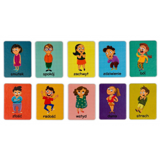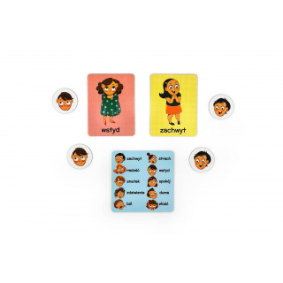 W zestawie znajdziecie: karty, żetony, listę emocji i medale. Realistyczne rysunki Katarzyny Urbaniak wprowadzą najmłodszych w świat emocji i pomogą je oswoić. Wszystkie elementy zostały wykonane z grubej tektury, co gwarantuje wytrzymałość i bezpieczną zabawę.