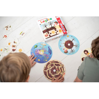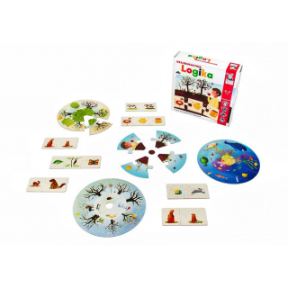 Logika to gra edukacyjna dla ciekawych świata przedszkolaków, która połączy wesołą zabawę z ćwiczeniem myślenia logicznego. Barwne układanki zapewniają wiele form rozrywki, do której nie wkradnie się nuda. Dzięki grze, dzieci rozwiną praktyczne umiejętności: określania następstwa czasu, związków przyczynowo-skutkowych, rozpoznawania przeciwieństw czy liczenia w zakresie 1-10. Zabawa z grą to świetny wstęp do dyskusji o konieczności ochrony środowiska i zależności człowieka od pór roku.