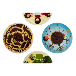 Zestaw zawiera 8 układanek 6-elementowych w kształcie koła z porami dnia i roku oraz gatunkami zwierząt, 8 układanek 2-3 elementowych z przeciwieństwami i związkami przyczynowo-skutkowymi. Różnorodne puzzle zostały wzbogacone barwnymi ilustracjami Aleksandry Krzanowskiej, które pomogą dziecku lepiej zrozumieć procesy zachodzące w przyrodzie i rozwinąć wyobraźnię.