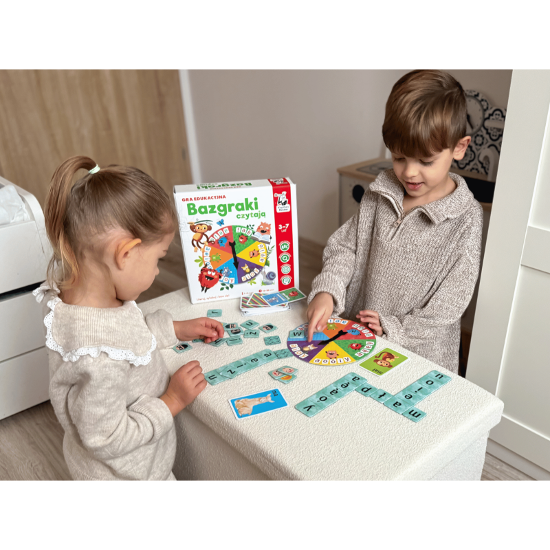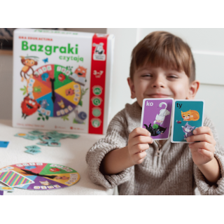 Bazgraki czytają. Gra edukacyjna to gra do nauki czytania, która może stanowić uzupełnienie zestawu ćwiczeń i elementarzy z naklejkami do nauki czytania metodą sylabową z uwielbianej przez dzieci serii Kapitana Nauki z Bazgrakami. Dzięki dwóm wariantom rozgrywek dzieci mogą doskonalić czytanie zarówno metodą sylabową, jak i literową. Za sprawą rozrywkowej formuły gry dzieci z łatwością utrwalają poznane wcześniej literki czy sylaby. Na graczy czekają ponadto czytelnicze wyzwania o różnym stopniu trudności, dzięki czemu gra posłuży przez dłuższy czas.