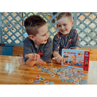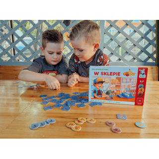 W sklepie to zamknięta w poręcznej walizeczce gra edukacyjna dla dzieci. W atrakcyjny dla dziecka sposób oswaja z codziennymi obowiązkami i nowymi wyzwaniami, uczy posługiwania się pieniędzmi i wykonywania prostych obliczeń. To nie tylko doskonały trening przed prawdziwą wizytą w sklepie, lecz także świetne wprowadzenie do nauki matematyki.