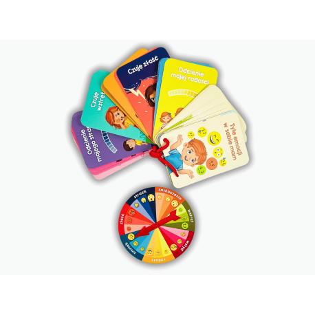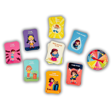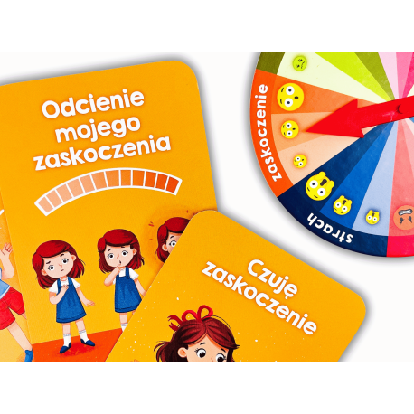 Każda aktywność została zaprojektowana tak, aby angażować dziecko poprzez zabawę, rozmowę i refleksję. Piękne ilustracje oraz przystępny język zachęcają do wspólnego spędzania czasu i otwierają przestrzeń do rodzinnych rozmów o emocjach. Zestaw został opracowany przez psycholożkę dziecięcą, dzięki czemu stanowi realne wsparcie w nauce empatii, uważności na siebie i innych oraz radzenia sobie z trudnymi emocjami. Koło emocji, dzięki barwnej prezentacji podstawowych uczuć, pomaga dzieciom nazwać to, co przeżywają, nawet wtedy, gdy brakuje im jeszcze słów.