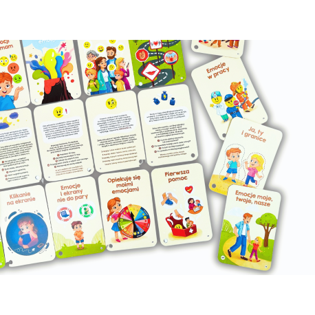 Karty i aktywności można wykorzystywać w wielu sytuacjach: w domu, w przedszkolu, w szkole, a także w gabinecie psychologicznym lub terapeutycznym. Sprawdzą się zarówno w codziennej zabawie, jak i w momentach wymagających wyciszenia czy rozmowy.