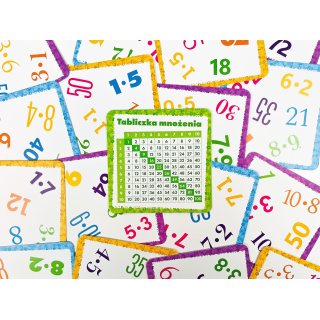 Na kartach znajdują się kolorowe zapisy działań mnożenia oraz iloczynów. Karty zostały podzielone według trzech poziomów trudności: mnożenie przez 1-5 i 10; mnożenie przez 6-9 oraz najtrudniejszy wariant: mnożenie w zakresie 1-10. Dodatkowe karty z tabliczką mnożenia 1-10 pomogą w szybkiej powtórce i utrwaleniu zdobytej wiedzy.