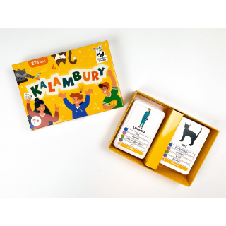 Kalambury to żywiołowa gra towarzyska, która sprawdzi się podczas rodzinnych wieczorów czy spotkań ze znajomymi. Na każdej karcie znajduje się hasło z ilustracją dla młodszych graczy oraz dodatkowe hasła, które można z sobą miksować, tworząc zabawne kombinacje. Emocjonująca rozgrywka i dużo śmiechu gwarantowane! W sumie do odgadnięcia aż 275 haseł! W zestawie znajduje się 55 kart oraz instrukcja.