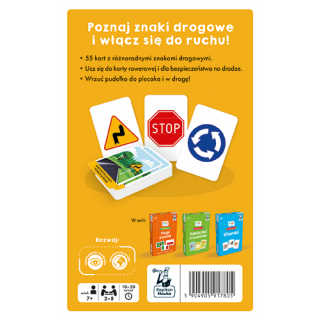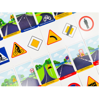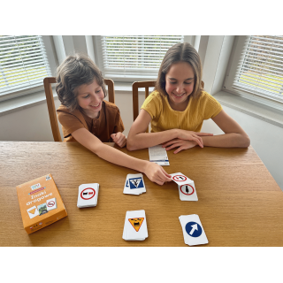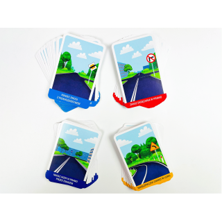 Przyjemna i prosta gra karciana, która pomoże poznać i zapamiętać 4 rodzaje znaków drogowych.