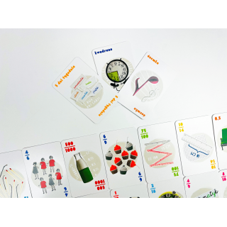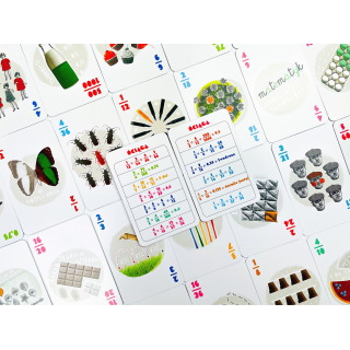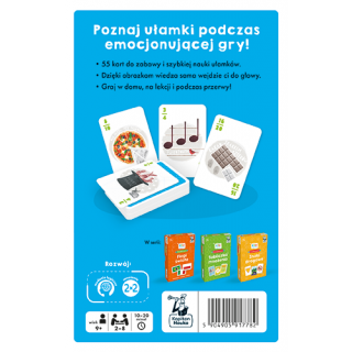 EDUseria. Ułamki. Gra karciana to zestaw 55 barwnie ilustrowanych kart przeznaczonych do nauki ułamków przez zabawę. Gracze mają do wyboru aż 6 różnych wariantów rozgrywki (w tym jeden wariant gry zawierający ułatwienie dla młodszych dzieci).