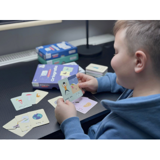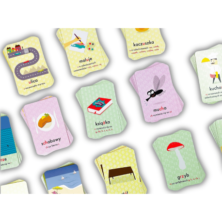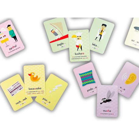 Zestaw składa się ze 110 kart, na których znajdują się słowa ilustrujące najważniejsze zasady polskiej pisowni, takie jak rz/ż, u/ó, ch/h. Dzięki temu dziecko uczy się poprawnej pisowni w kontekście. Karty można przeglądać samodzielnie lub wykorzystywać do różnorodnych gier opisanych w instrukcji, co sprzyja utrwalaniu wiedzy i zapamiętywaniu bez stresu.