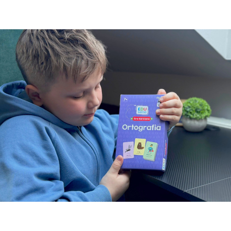 EDUseria. Ortografia. Gra karciana pomaga dzieciom pisać bez błędów, rozwija koncentrację i pewność siebie, a jednocześnie zachęca do nauki poprzez rywalizację i wspólną zabawę. To doskonały wybór dla rodziców, którzy chcą wspierać swoje dziecko w nauce ortografii w sposób nowoczesny i skuteczny.