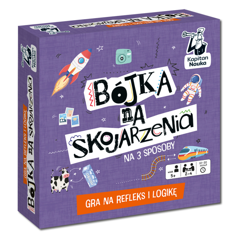 Bójka na skojarzenia. Gra na refleks i logikę to gra karciana dla dzieci, w której liczy się spostrzegawczość i koncentracja. Zadaniem graczy jest odnajdywanie par obrazków, które naturalnie do siebie pasują: np. klucz i kłódka, astronauta i rakieta, koń i podkowa. Brzmi prosto? Dopóki przeciwnicy nie zaczną działać szybciej!