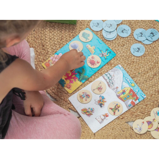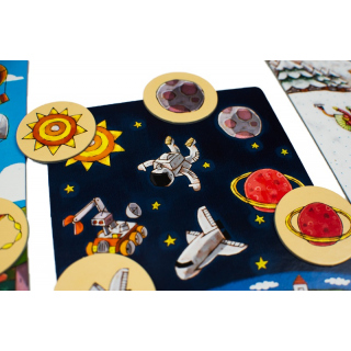 Znajdź żetony i dopasuj je do miejsc na planszy. Ćwicz pamięć, spostrzegawczość, koncentrację i myślenie logiczne. 4 stopnie trudności rozgrywki!