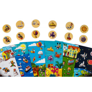 Find the tokens and match them to the right places on the board. Find and remember the details. Four variants of the game with different levels of difficulty!