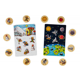 Retrouvez les jetons et placez-les au bon endroit sur la planche. Jeu de mémoire, d’observation, de concentration et de logique. 4 niveaux de difficulté!