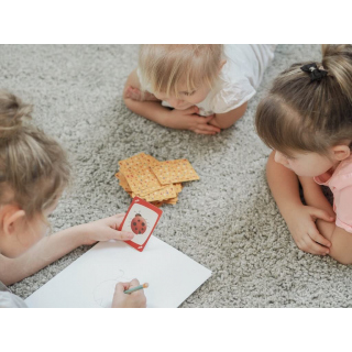 Trage una dintre cele 110 carduri cu imagini. Conform simbolului de pe card, descrie termenul în cuvinte, redă-l cu sunete, demonstrează-l cu gesturi și mișcări sau desenează-l.