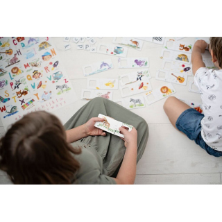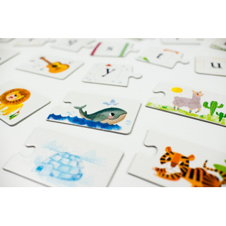 Three variations of the game – jigsaw puzzle, memory, and word puzzles – guarantee great entertainment, as children learn the letters and get prepared to learn to read in English. While playing, they train their memory and visual perception, and stimulate their linguistic imagination and creativity by making up their own riddles.