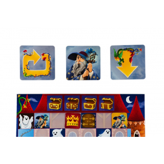 Grundlagen der Programmierung und Erstellung von Algorithmen für die Kinder mit einem kinderfreundlichen Spiel, ohne Verwendung von Bildschirmen. Schlüpfen Sie in die Rolle eines cleveren Zauberers, der eine Strategie für die Schatzsuche entwickelt, bevor der Geist aus dem Schlossturm hinausschaut. Üben Sie Kreativität, logisches Denken und soziale Kompetenz mit Ihren Kindern zusammen.