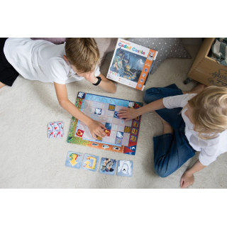 The game offers a way to learn the basics of programming and developing algorithms in a cooperative manner without using screens. Take on the role of a clever sorcerer who has to develop a treasure hunt strategy before the ghost looks out of the castle tower. Practice creativity, logical thinking and social competences.