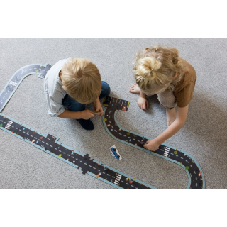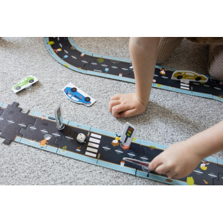 Construisez votre route, choisissez votre véhicule et foncez jusqu’à la ligne d'arrivée ! Développez votre orientation dans l’espace et votre créativité en construisant un parcours différent à chaque fois. Participez à une course passionnante tout en améliorant votre motricité fine.