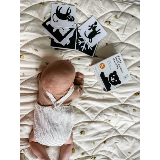 Na dużych kartach o wymiarach 13 x 13 cm znajduje się 20 obrazków i wzory, które maluszki uwielbiają oglądać, gdyż dobrze widzą kontrastowe kontury.