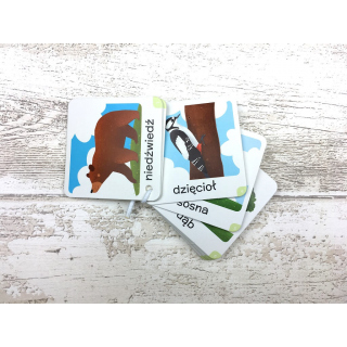 Podczas zabawy z kartami, dziecko pozna leśnych mieszkańców, przedstawicieli fauny i flory, dowie się jak wyglądają m.in. niedźwiedź, motyl, lis czy grzyb. Barwne ilustracje przyciągną uwagę maluszka, a dzięki podpisom dziecko poćwiczy mowę i szybko powiększy zasób słownictwa. Nauczy się identyfikować leśnych mieszkańców i dopasowywać do obrazków nazwy poszczególnych gatunków. Karty świetnie sprawdzą się na początkowym etapie czytania globalnego.