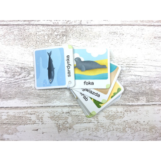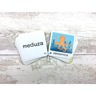 Karty obrazkowe można wykorzystać do zabawy na wiele sposobów: oprócz poznawania morskich gatunków, dziecko może szukać podobieństw, różnic i tworzyć proste klasyfikacje na podstawie kolorów. Wszystkie ilustracje są podpisane, a zabawa z nimi wspiera rozwój mowy i poszerza zasób słownictwa. Karty świetnie sprawdzą się na wczesnym etapie nauki czytania globalnego.