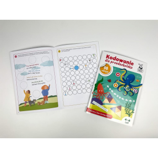 Kodowanie dla przedszkolaka (4–6 lat) to bogato ilustrowana książka wprowadzająca młodsze dzieci w podstawy programowania bez użycia komputera. Zawiera mnóstwo łamigłówek obrazkowych, m.in. zabawy z rytmami i sekwencjami, proste ćwiczenia na kratownicy przygotowujące do kodowania na macie, a także ćwiczenia na odgadywanie szyfrów, wyznaczanie tras i pisanie prostego kodu.