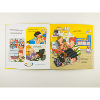 Na końcu książeczki czeka niespodzianka: słowniczek obrazkowy z pojęciami związanymi z opieką nad dzieckiem oraz pamiątkowy dyplom rodzeństwa do uzupełnienia danymi dzieci oraz miejsce na wklejenie wspólnego zdjęcia.