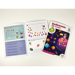 Kodowanie dla ucznia (7–8 lat) to bogato ilustrowana książka wprowadzająca uczniów młodszych klas podstawowych w świat kodowania bez użycia komputera. Zawiera zabawy z sekwencjami i algorytmami oraz ćwiczenia na wyznaczanie tras i tworzenie kodu. Zadania z kodami oparte są na literach, liczbach i symbolach, aby rozwijać myślenie abstrakcyjne, poszerzać zasób słownictwa oraz utrwalać umiejętności matematyczne u dzieci.