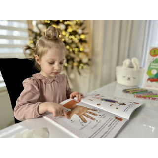 Bogato ilustrowane zadania i ciekawostki rozbudzają wrodzoną ciekawość świata u dziecka, a kreatywne materiały, takie jak naklejki, kolorowe plansze oraz materiały do wycięcia ułatwiają samodzielną naukę w najbardziej naturalny sposób, czyli poprzez doświadczenie i działanie. Dzięki połączeniu zagadek logicznych z różnorodnymi technikami plastyczno-sensorycznymi maluchy poznają metodę Montessori w praktyce, a przy tym rozwijają inteligencję matematyczną, myślenie logiczne oraz wzbogacają słownictwo.